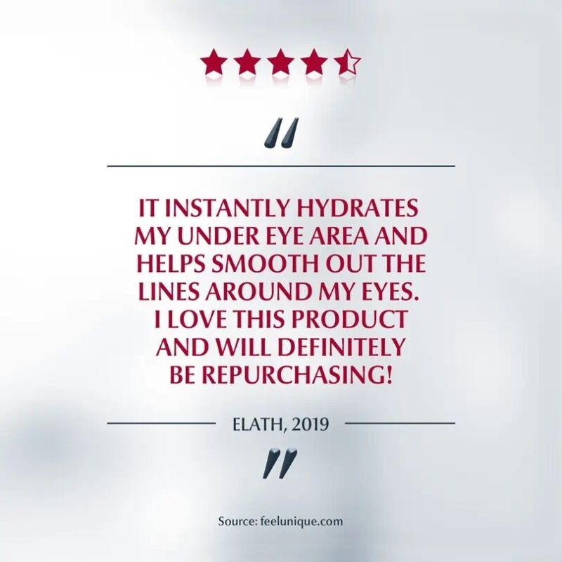 The unique formula delivers multiple anti-aging benefits. With Eucerin’s innovative blend of both high and low molecular Hyaluronic Acid and Arctiin (an active proven to accelerate collagen renewal in skin cells) it visibly plumps up even deep wrinkles for smoother, firmer skin around your eyes and a radiant, awake look.