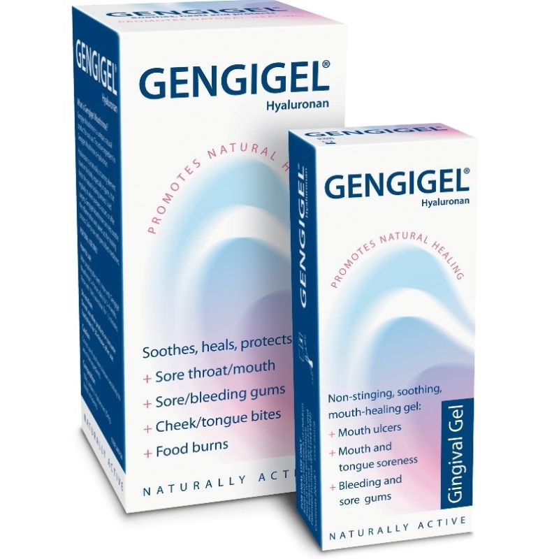 Gengigel Mouthrinse contains Hyaluronan (also known as Hyaluronic acid), a substance found naturally in your tissues that has a structural and regulatory role in the soft tissues and is believed to be essential in the healing process. Several clinical studies have shown that Gengigel Mouthrinse can accelerate the rate of tissue healing and reduce inflammation. Gengigel Mouthrinse has also been shown to reduce the number and duration of recurrent mouth ulcers. Regular application of the gel soothes and promotes healing.