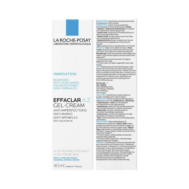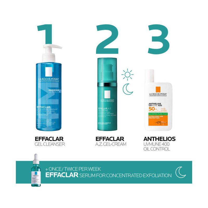 Apply 1 pump of Effaclar A.Z. Gel-Cream morning and evening on the face after your face cleanser and your daily serum. Follow by applying a SPF in the day time to protect your skin. Avoid contact with eyes. If contact occurs rinse thoroughly with water.