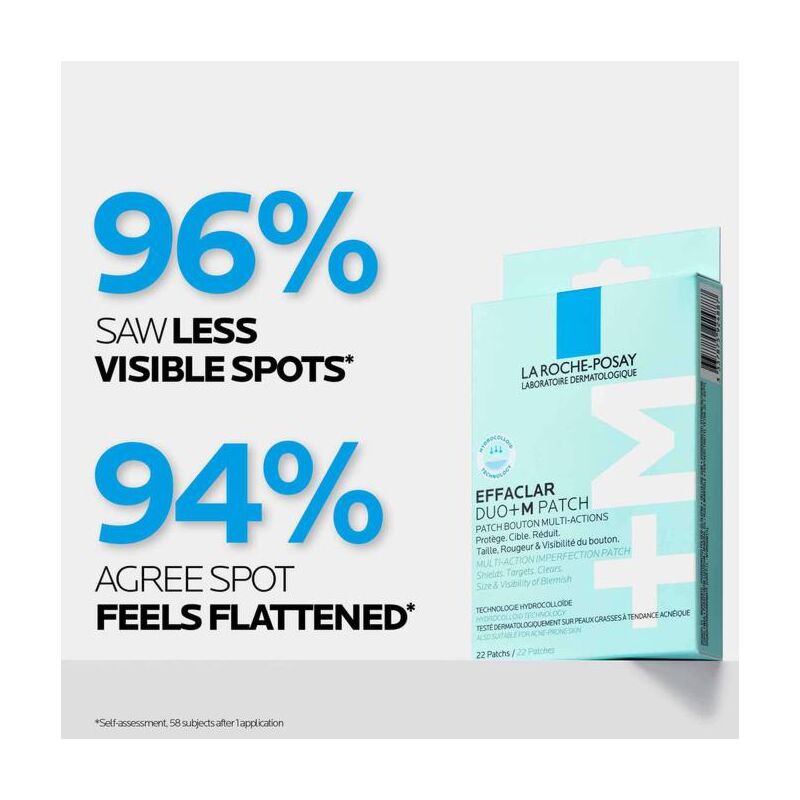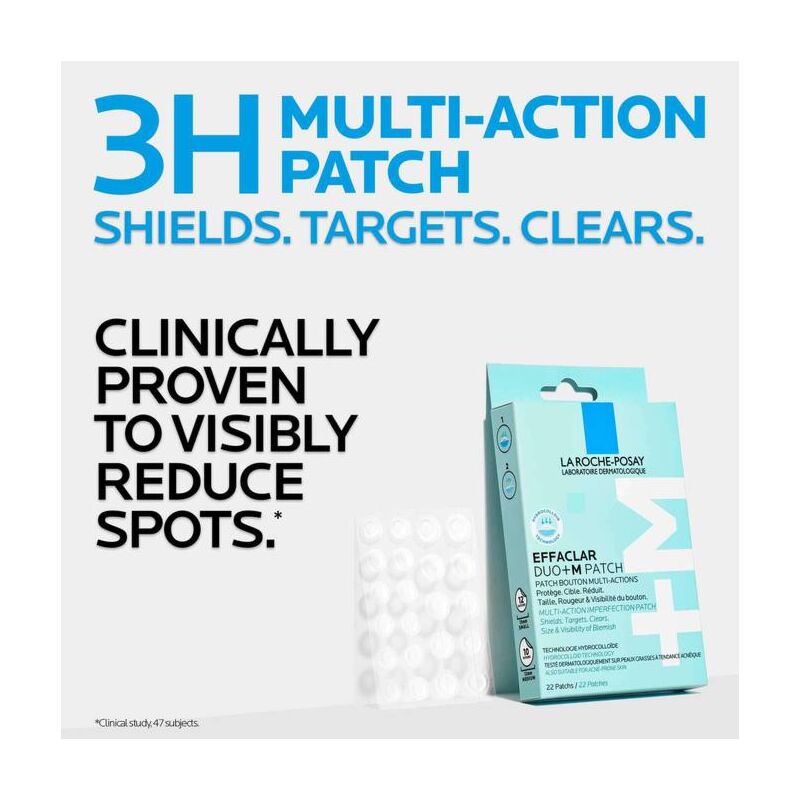 CLINICALLY PROVEN: Effaclar Duo+M 3H Spot Patches are clinically proven to visibly reduce spots from 3 hours after application*.