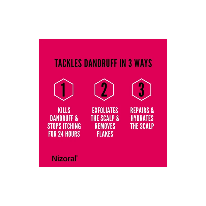 We understand recurring dandruff can be frustrating, Nizoral Anti-dandruff Daily Prevent Shampoo contains next generation dandruff control to effectively create a shield against dandruff returning, keeping your scalp healthy and hair soft and silky.