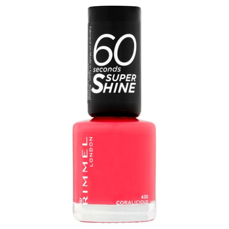 60 Seconds Super Shine nail polish from Rimmel London! New and improved formula for Chip resistant, anti-fade high shine colour for up to 10 days with precision maxi brush, glides perfectly on the nail, for a flawless professional like finish with a quick drying formula dries in less than 60 seconds